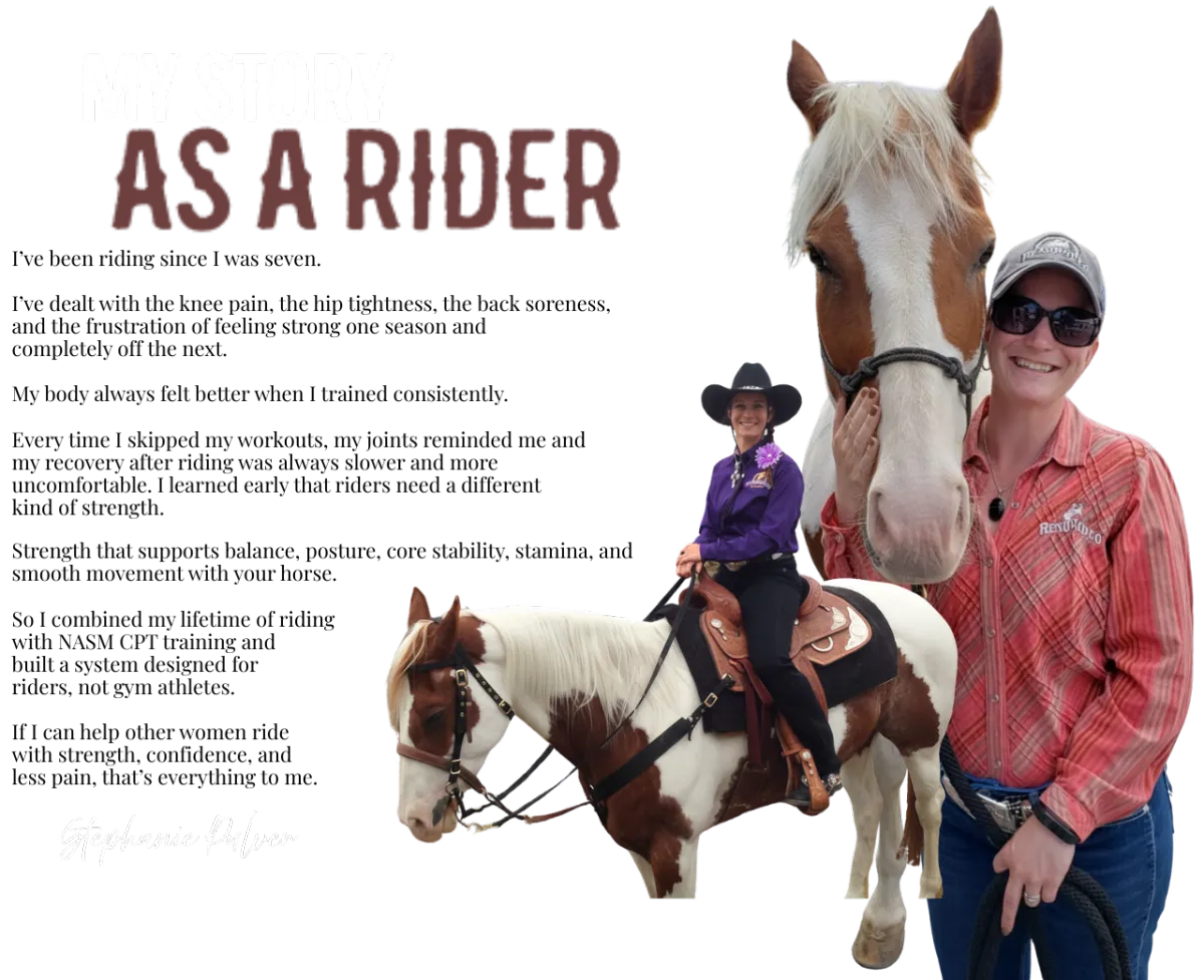 So I combined my lifetime of riding with NASM CPT training and built a system designed for riders, not gym athletes.
