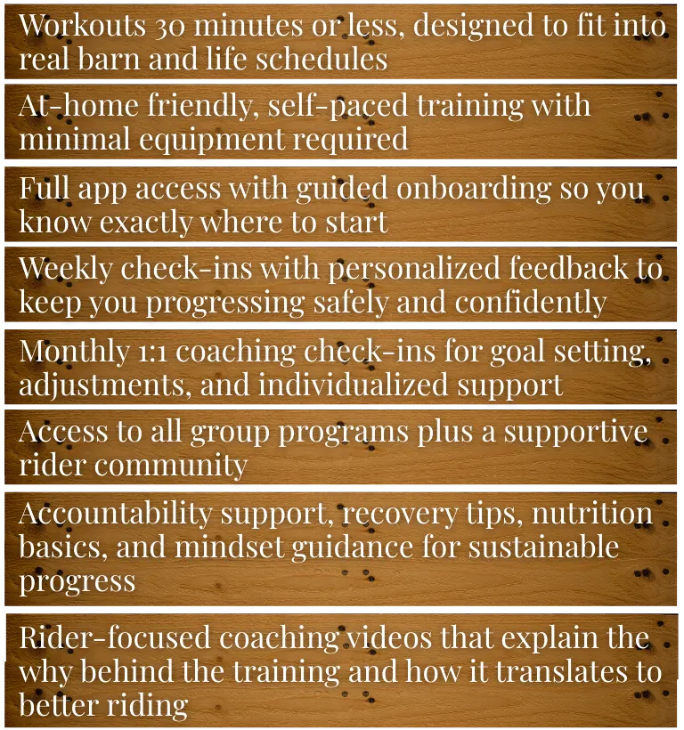 Strength that supports balance, posture, core stability, stamina, and smooth movement with your horse.